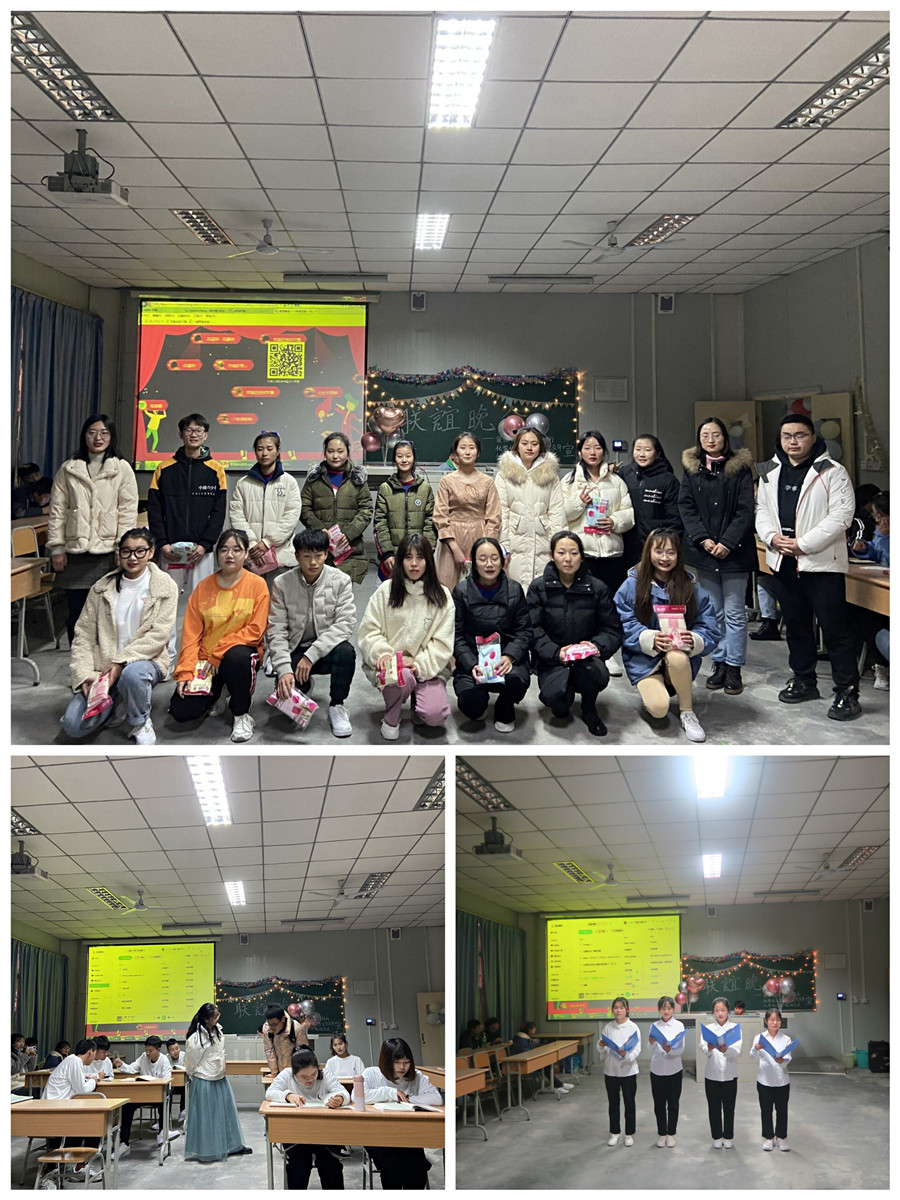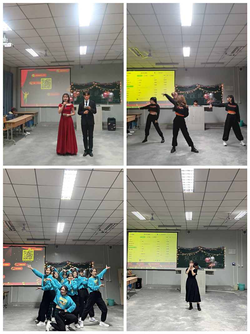 为促进广大新生适应校园生活,加强员工党员、入党积极分子与新生之间的交流,增强同学们之间的情谊。12月20日晚19:00,公司在1012和1014教室举行了新生联谊晚会。员工党支部书记王瑜老师、组织委员许珂瑶老师、团总支书记于正豪老师以及部分员工党员、积极分子参加本次联谊晚会。