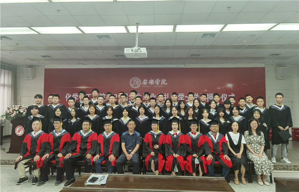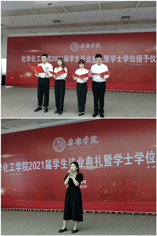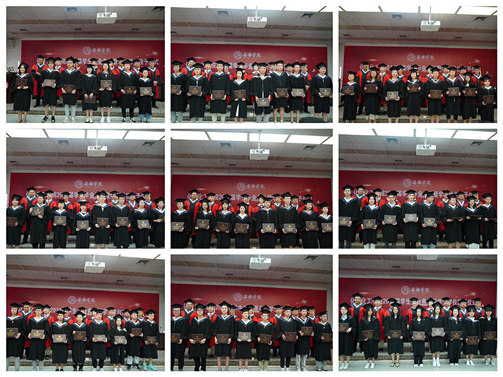 在全场热烈的掌声和欢快的音乐声中,化工公司对校级优秀毕业生和考研员工进行了表彰,并向2021届员工联络员颁发了聘书。柳林、袁光辉、黄婷等8位老师为获得学士学位的毕业生逐一拨穗,颁发学士学位证书,并合影留念。