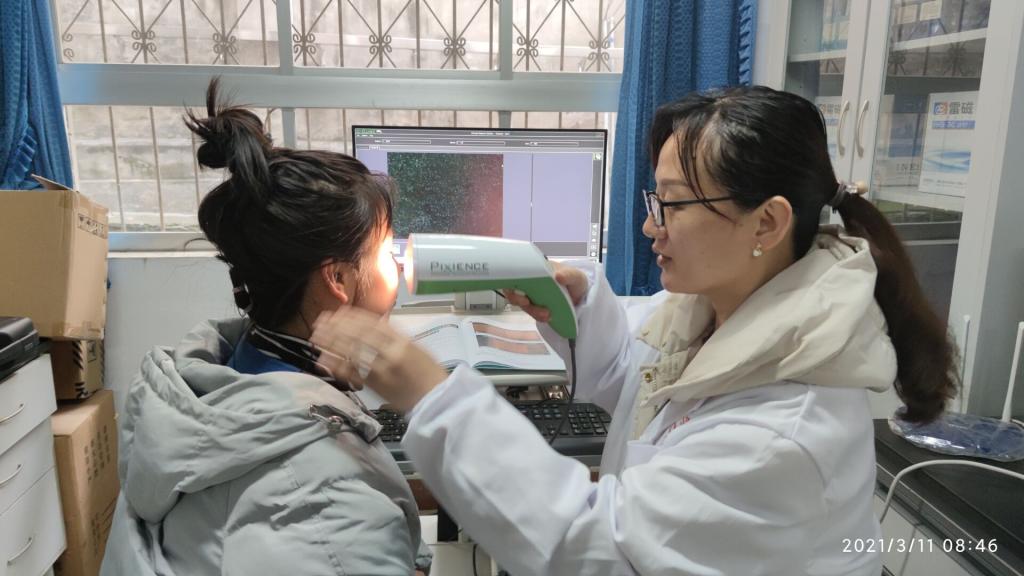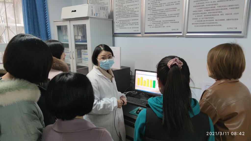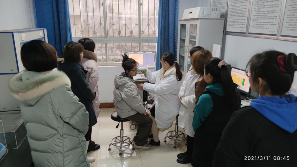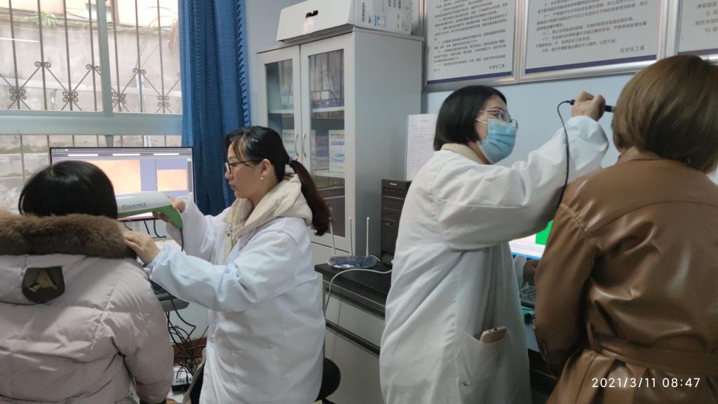 化妆品技术工程系的寇莹,张芳两位老师采用德国CK多探头皮肤测试仪MPA10,为全校的女教工和女员工免费检测了皮肤水分、油脂、红色素、黑色素等,并对她们皮肤保养提供宝贵的建议。