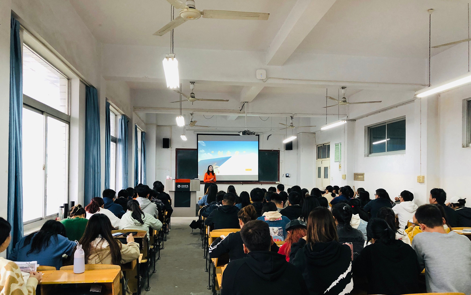 王丽女士结合自身多年从业的经验,分析了当前老员工的就业形势,从为什么创业、创业初期的困难、解决方法、发展过程的体验和感悟、创业中责任的转换五个方面讲授了自己的创业故事,并全面系统的对创业过程中需要注意的问题进行了详细的分析,穿插了大量的互动环节,同学们踊跃发言,课堂气氛活跃。