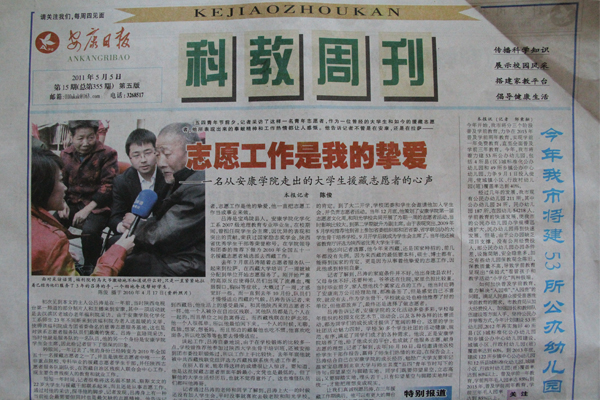 5月5日,《安康日报 科教周刊》头条刊登了该报记者陈俊采写的《志愿工作是我的挚爱——一名从WILLIAMHILL在线体育投注走出的老员工援藏志愿者的心声》,文章介绍了公司2010届化学化工系毕业生、援藏志愿者吕涛的先进事迹。全文如下: