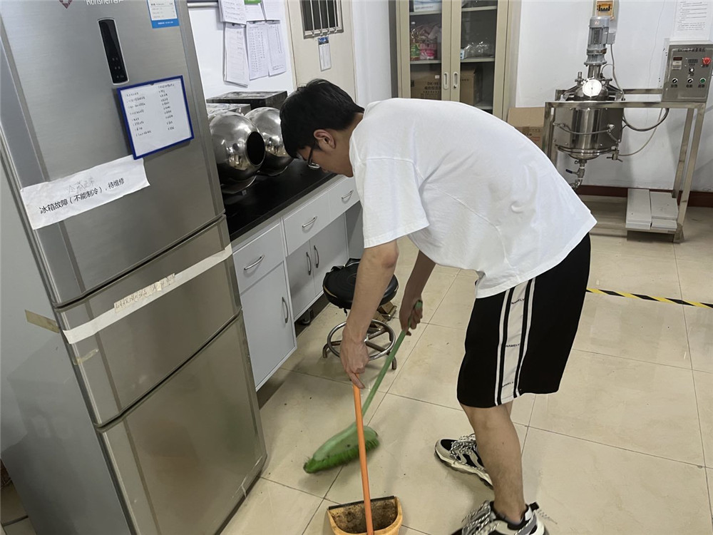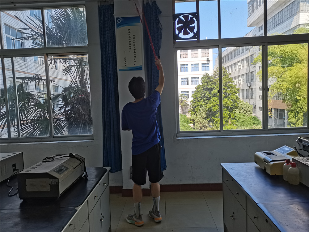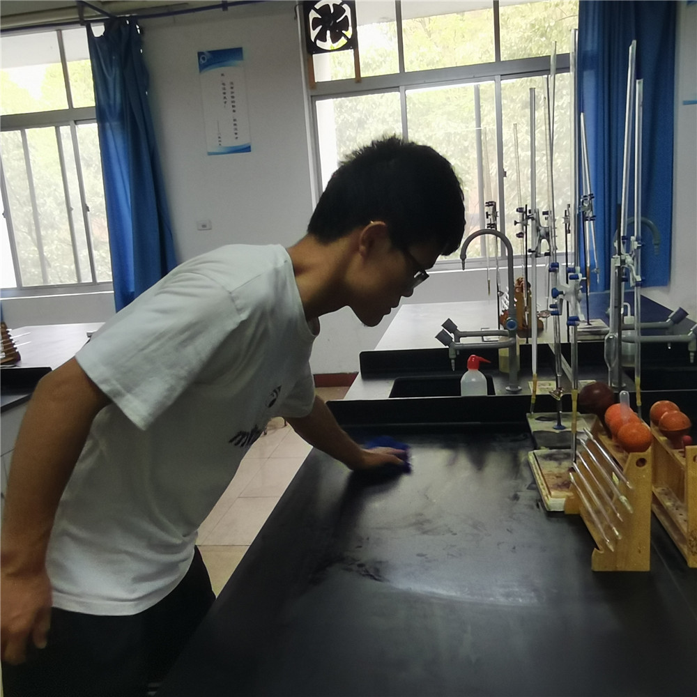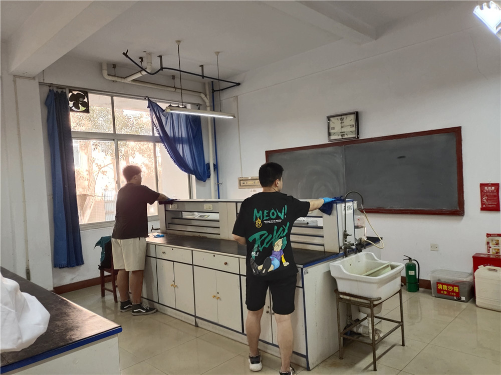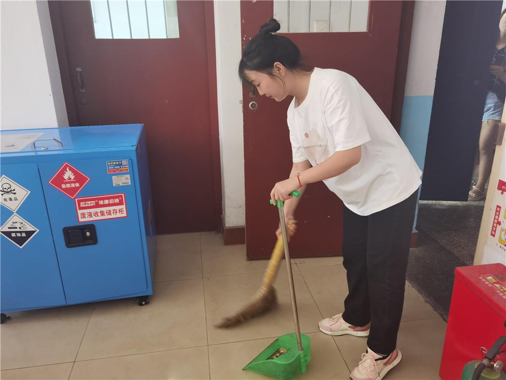 活动期间,2020级所有同学在组长的带领下井然有序地协助实验室管理老师对实验室进行打扫。打扫过程中,大家分工明确,各执其责,从实验台面到实验仪器;从地面到卫生死角,都能打扫的一丝不苟、干净整洁,而且在完成自己任务的同时也不忘互帮互助,在团结协作中认真完成实验室打扫工作。