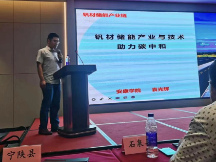 袁光辉为企业开展了题为“钒材储能产业与技术助力碳中和”的培训,培训结合我国“碳达峰”和“碳中和”整体目标和国家省市政策、安康市产业链布局和安康企业概况,为参会企业代表讲解了碳中和的减碳路径及对应的五大产业链和相关技术,重点讲解了安康市重点产业链链长制及钒材储能产业链的构成、任务清单、技术清单等,鼓励企业结合国家省市政策提早布局,锚定方向,开展技术攻关,以提高产业附加值和企业竞争力。