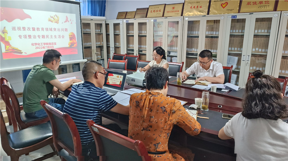 化学化工公司党总支书记王永东代表班子通报了专项整治落实情况,对照专项整治6个方面重点任务,结合班子检视存在的问题进行原因分析,并提出下一步整改措施。随后,领导班子成员逐一进行了个人对照检查,严肃开展批评和自我批评,明确努力方向和改进措施。