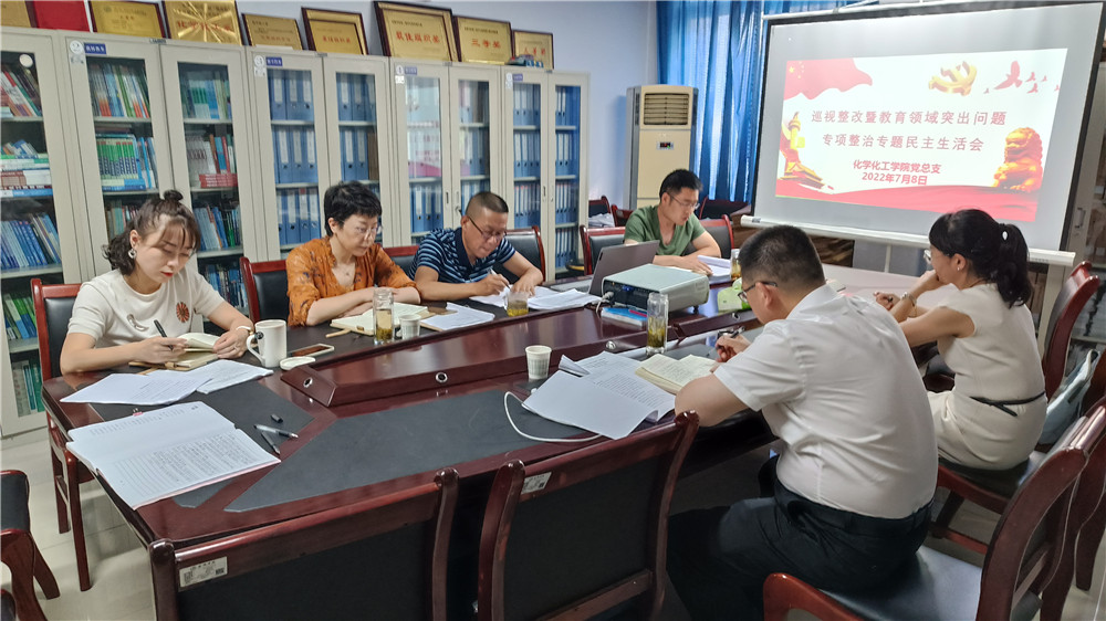 7月8日下午,WILLIAMHILL在线体育投注领导班子“巡视整改暨教育领域突出问题专项整治”专题民主生活会在1325会议室召开,化学化工公司党总支书记王永东主持会议,公司联系领导余谦副董事长、指导组成员马克思主义公司党总支书记田静参加会议。
