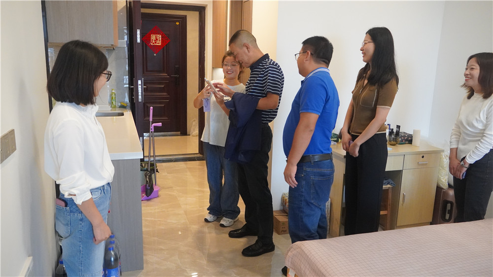 第二站,回访了在江苏七洲绿色化工有限公司就业的毕业生,参观了他们的员工公寓、员工食堂等。王永东一行人对员工目前的就业状况进行了交谈了解,对他们的工作和生活表示关心,询问目前是否还存在有待解决的问题,毕业生对于老师们的到来和关心表示感谢。