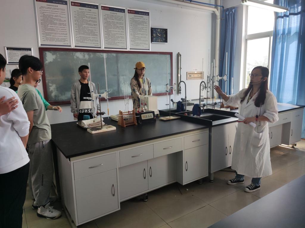寇莹老师带领同学们参观了公司实验实训教学中心,包括化工综合实训室、老员工创新创业实验室、无机化学与分析化学实验室、仪器分析实验室、物理化学实验室、有机实验室、化工虚拟仿真实验室以及陕西省富硒食品质量监督检验中心等专业实验室和科研平台,给同学们讲解了专业特点、培养目标和各专业实验室承担的主要教学科研任务,鼓励员工积极参与各类竞赛及科研活动,力争在校期间获得更多成果。