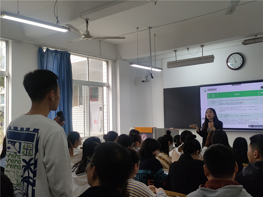 为了全力推进2023届毕业生高质量就业,构建毕业生与用单位的交流平台,推进就业指导工作落实落细。WILLIAMHILL在线体育投注采取“走出去,请进来”的方式邀请企业来校开展校园专场招聘。2023年3月10日上午,陕西巨子生物技术有限公司在一号楼1216教室举行专场宣讲会,同时线上分会场同步直播。