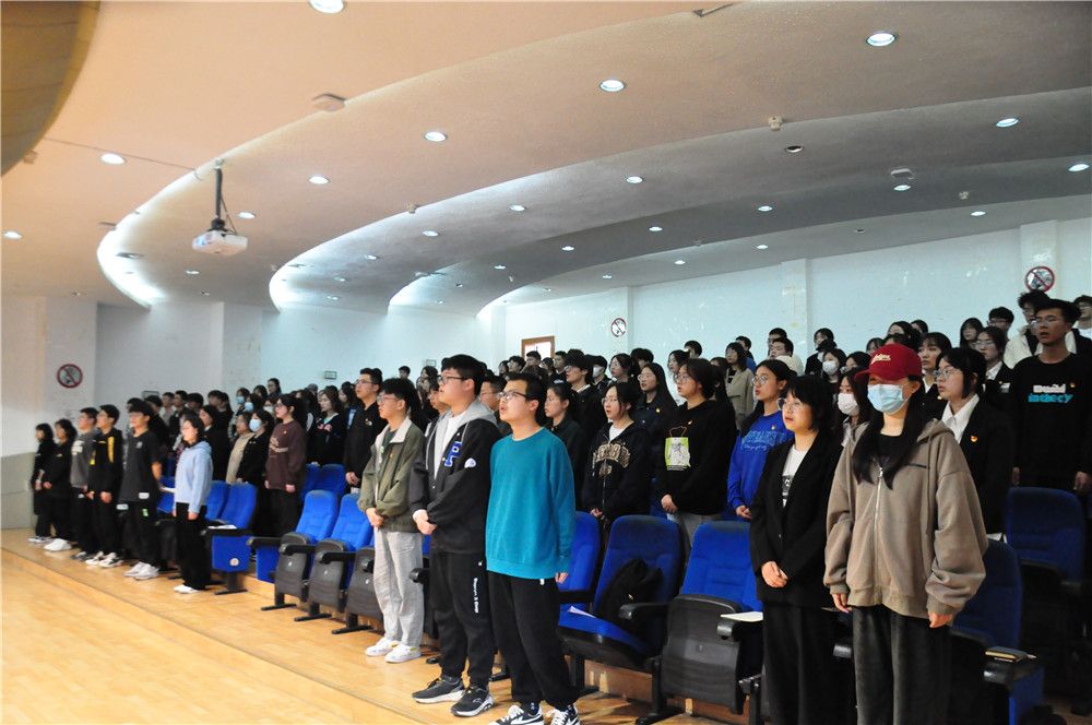 全体到会的教师与员工干部起立并奏唱国歌。