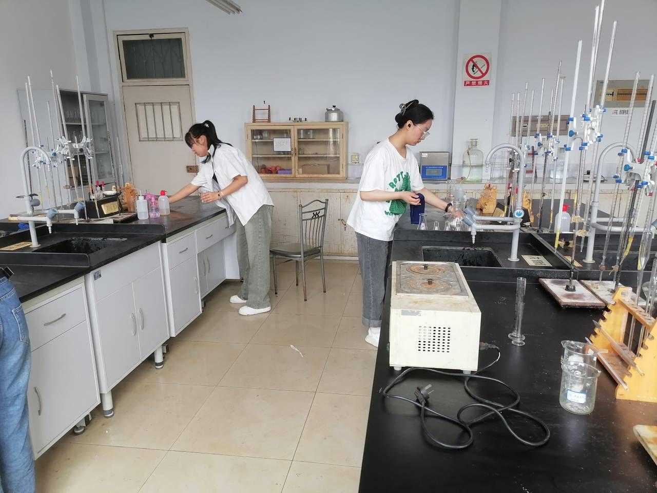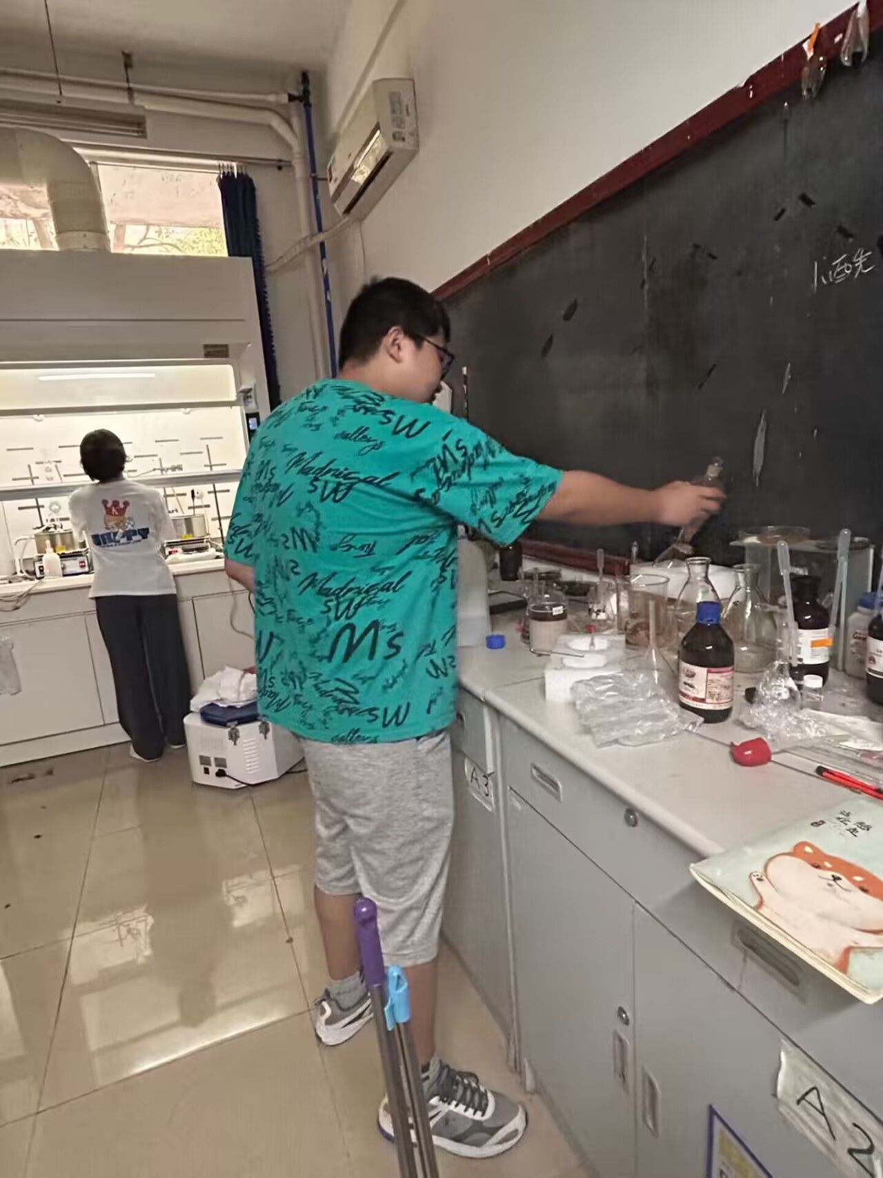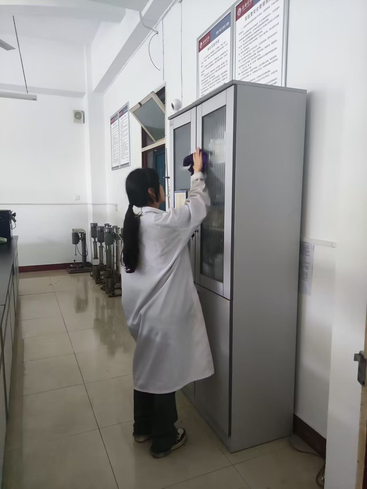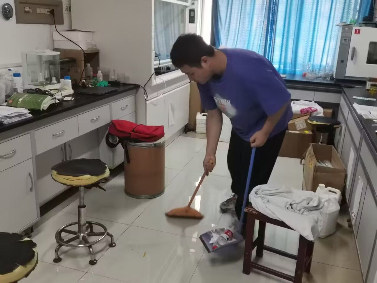 活动开展期间,2020级所有同学在各组组长的带领下井然有序的进入到负责的实验室,协助实验室管理老师对实验室进行打扫。在打扫过程中,同学们热情高涨、干劲十足、分工明确,积极拿起清扫工具,仔细擦拭仪器、桌面、窗台,认真清扫地面灰尘,丝毫不马虎,同时帮助老师统计药品数量并将其摆放整齐。在清扫完成之后,各组组长对打扫的情况进行检查,确保打扫干净,没有遗漏之处。