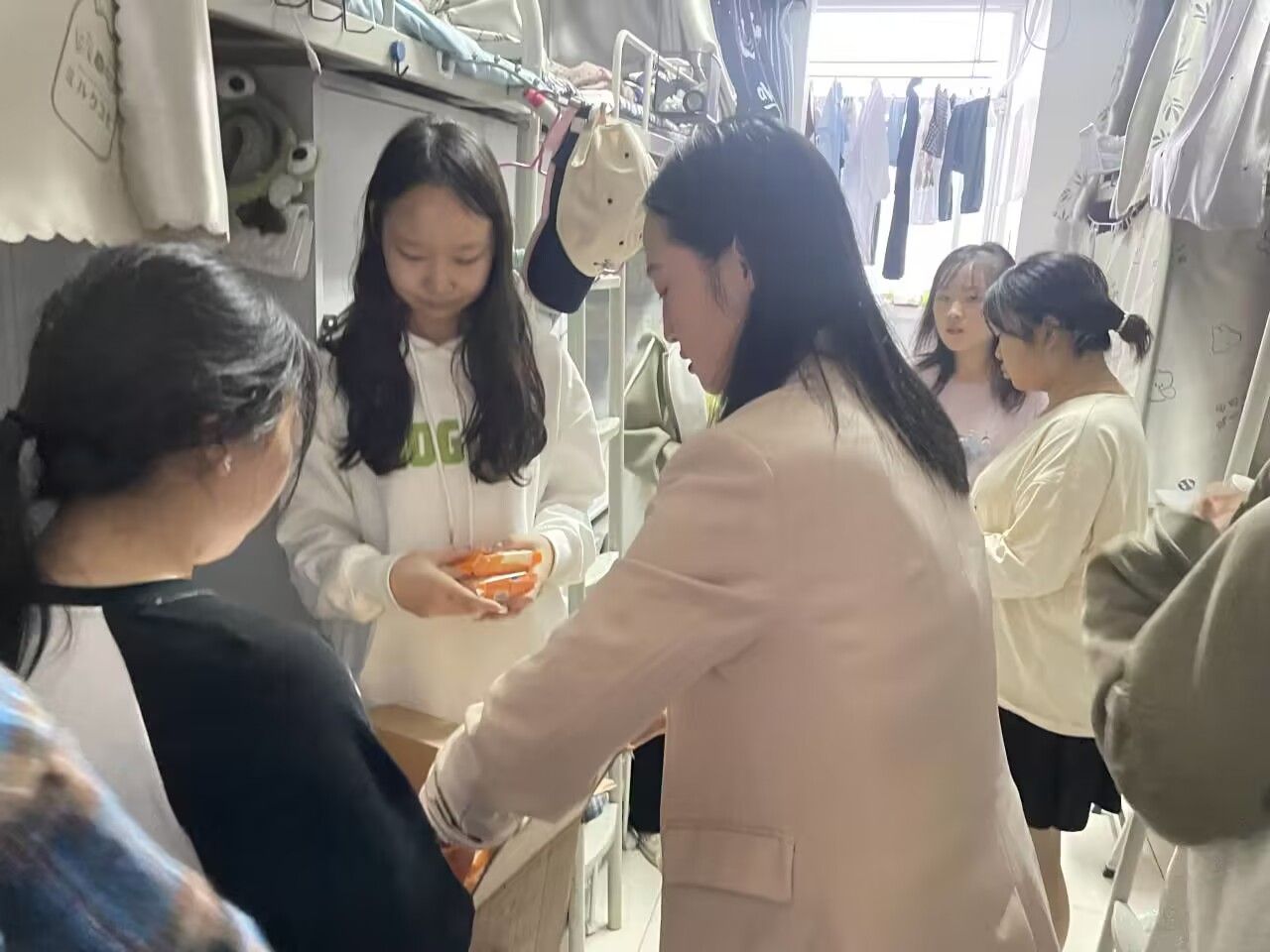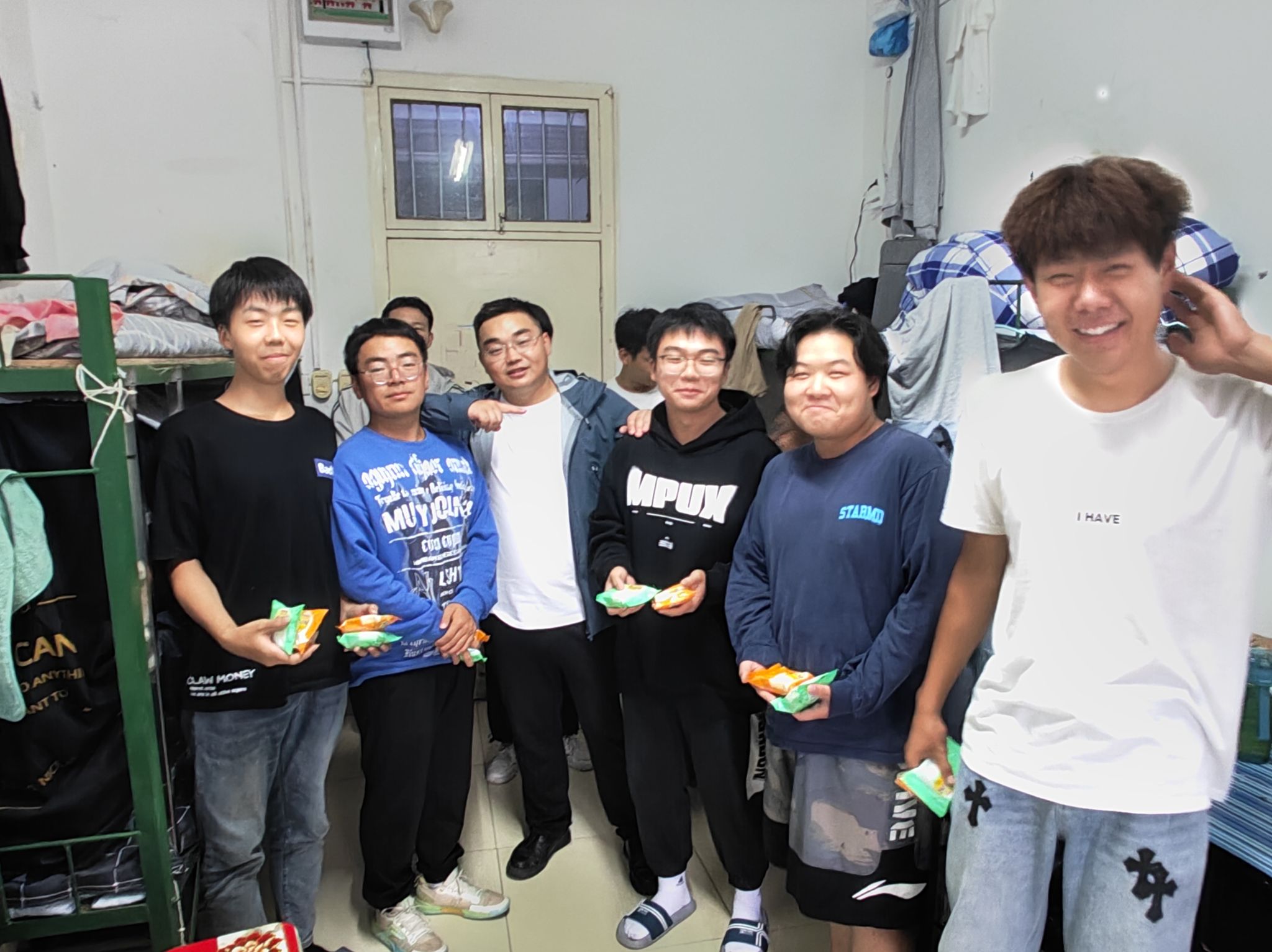 2023年9月27日晚,WILLIAMHILL在线体育投注辅导员老师,带领员工党员、员工干部走进员工寝室,将饱含温情的节日礼物——月饼,送到每一位员工手中,向他们送去节日的祝福,与他们共迎“双节”。