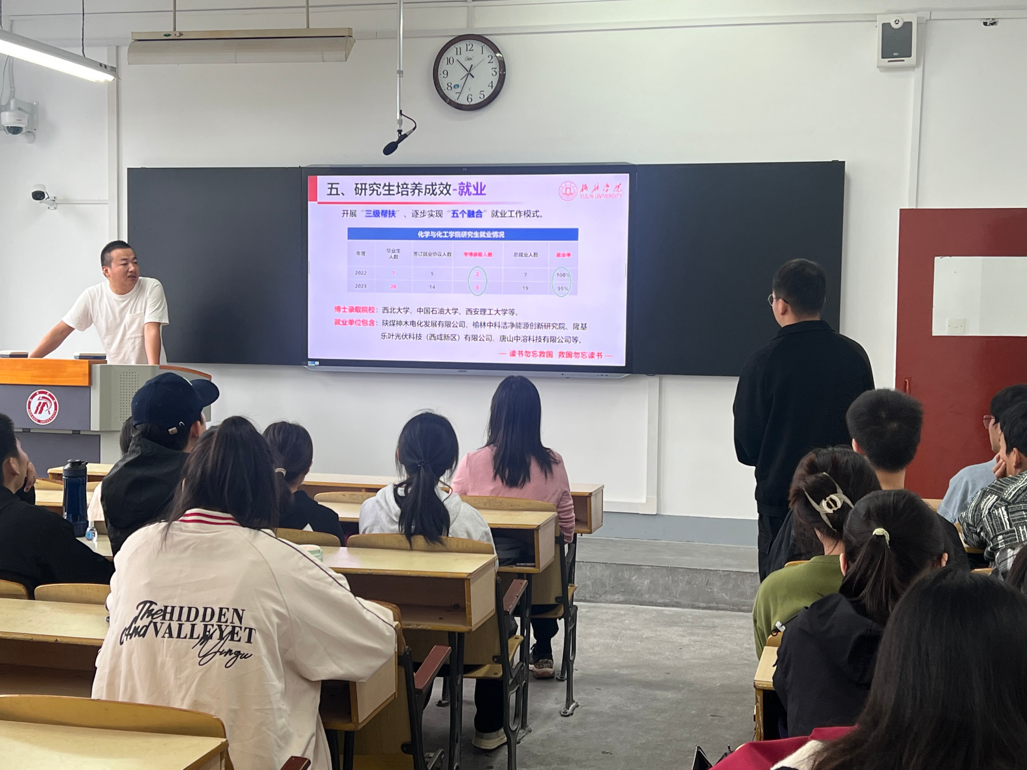 刘博士从榆林公司化学与化工公司的历史沿革、团队力量、教学机构,仪器设备等方面介绍了公司的概况,然后又简单介绍了公司的教学工作和科研工作,随后就培养概况、招生专业及方向,培养目标、就业情况以及奖学金和助学金政策等几个方面向同学们介绍了公司的公司产品工作以及2023年招生情况。最后,刘博士亲切解答同学们在备考过程中的困惑,并表示非常欢迎化工公司考研员工报考榆林公司。