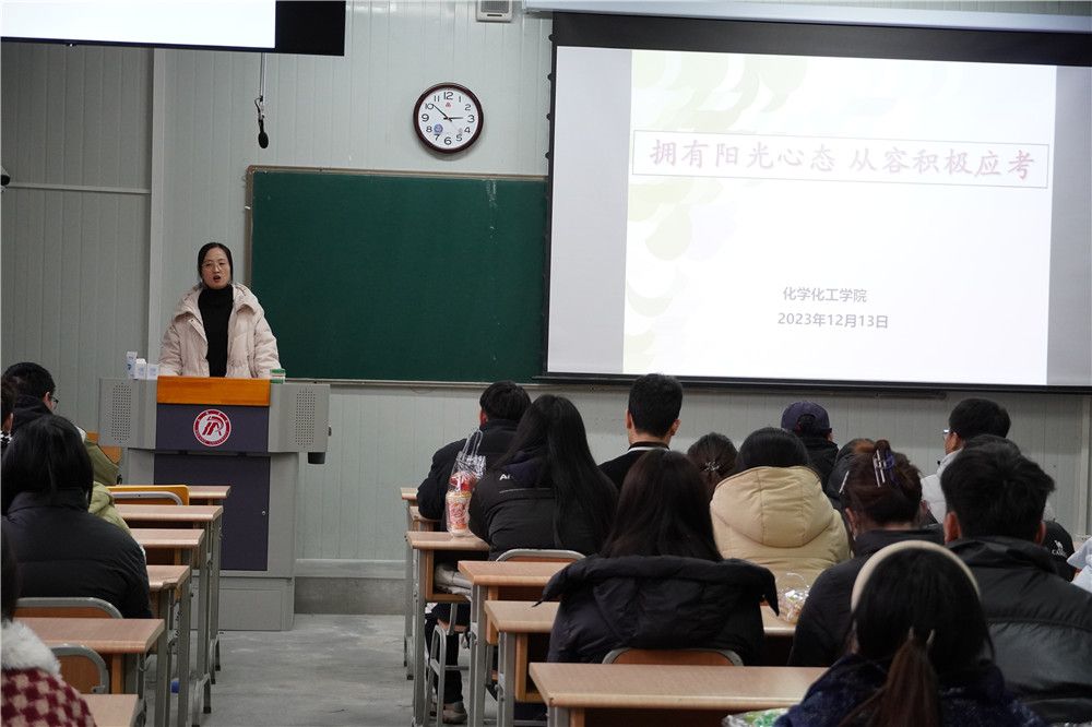 接下来,王瑜从心理学的角度,分析了考前可能出现的情绪波动,并结合近三年公司员工的备考经历与毕业去向,指出考前紧张焦虑是人的正常表现,适度的压力反而有利于提高效率、促使达成最终目标。她强调,放平心态是应对考试的关键,同学们要学会调整自己的心态,以积极的态度面对考试。此外,她还分享了一些放松心情、瞬时减压的方法,如适时倾述、合理安排作息时间等。