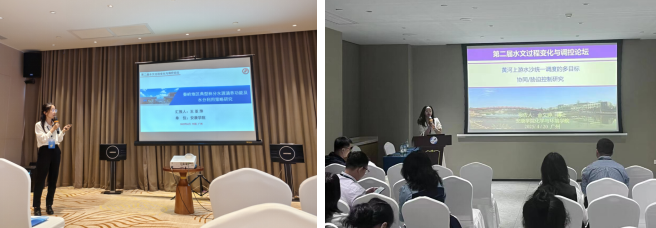 本届论坛以"水文过程变化与调控"为主题,通过大会报告、分论坛研讨等多种形式,实现了多学科交叉融合、宽领域思想碰撞和多维度深入探讨。王亚萍和金文婷博士分别在“森林生态水文过程与生态修复”和“水工程联合调度与水资源配置”分会场作了《秦岭地区典型林分水源涵养功能及植物水分利用来源研究》和《黄河上游水沙统一调度的多目标协同/胁迫控制》的学术报告,并与来自河海大学、新疆大学、北京林业大学以及西北农林科技大学等高校的专家学者进行了深入交流和探讨。