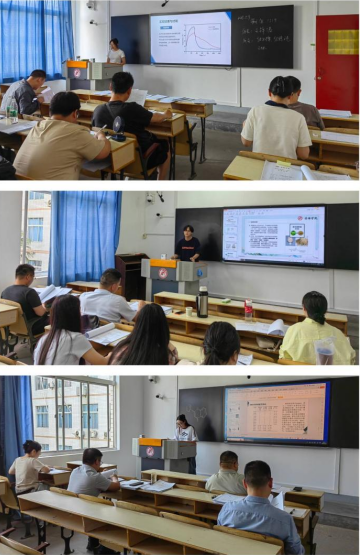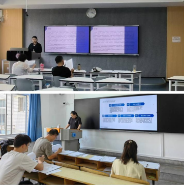 述和质询两个环节。参加答辩的同学都制作精美的PPT对论文(设计)的研究背景意义、研究方法、结果分析与结论等部分逐一进行汇报。评审教师就答辩内容进行提问,并就论文(设计)存在的问题提出中肯而富有建设性的修改建议。答辩现场秩序井然,评审老师与答辩员工积极互动、充分交流,并对每位员工的答辩情况进行了详尽的记录。