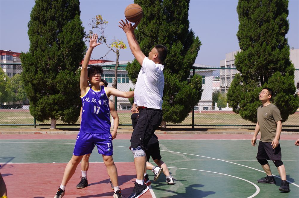 随着一声清脆的哨响,比赛正式开始。毕业生代表队依靠默契的配合和灵活的身手勇敢出击,展现出青春的朝气和蓬勃的生机。教职工代表队凭借丰富的经验和稳健的防守紧咬比分,一次次精彩的传球瞬间点燃了现场的气氛,双方战况焦灼,比赛精彩万分。篮球场边,加油声、欢呼声此起彼伏,观战的师生们情绪高涨,为双方队伍的每一次进球鼓掌喝彩。