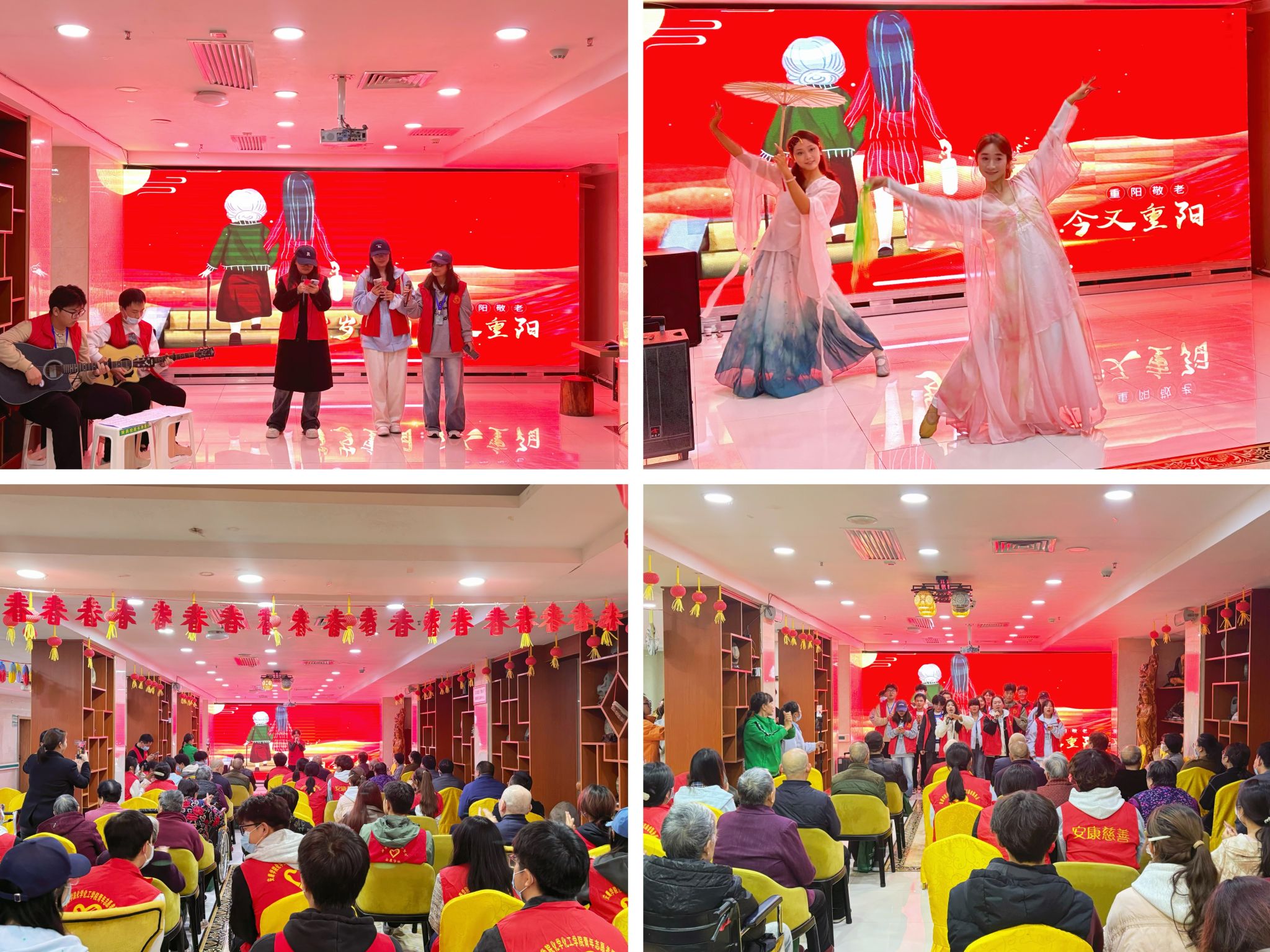 红色文艺表演环节,志愿者们表演了歌曲、诗朗诵、舞蹈等节目,为老人们带去欢乐与感动,赢得阵阵掌声。