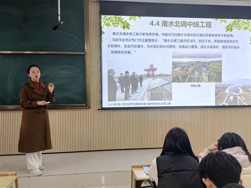 讲座核心部分聚焦汉江水资源价值与生态保护,金老师重点阐释引汉济渭、南水北调中线两大战略工程的建设意义与实施成效。两大工程既解决了关中、华北地区的用水短缺问题,更通过生态鱼道、鱼类增殖放流站等创新举措,实现水资源调配与生物多样性保护的双赢。同时,她还介绍了汉江“十年禁渔令”、退耕还林、湿地修复等生态保护实践,直观展现了汉江流域在水质改善、物种恢复等方面的显著成效。